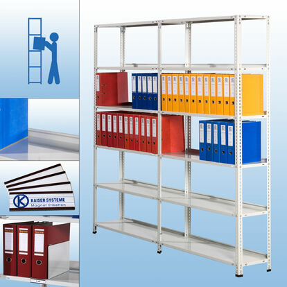 Platz für 45 - 105 Ordner. Tragkraft der Böden bis zu 460 kg. Einfacher und schneller Aufbau dank dem Stecksystem.