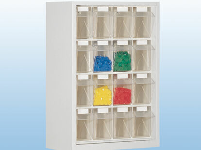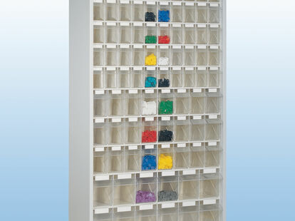 Mit den 69 STALA-Klarsichtboxen (Klappkästen) dieses Magazinschranks organisieren Sie Ihre Kleinteile und behalten den Überblick über Ihren Lagerbestand.