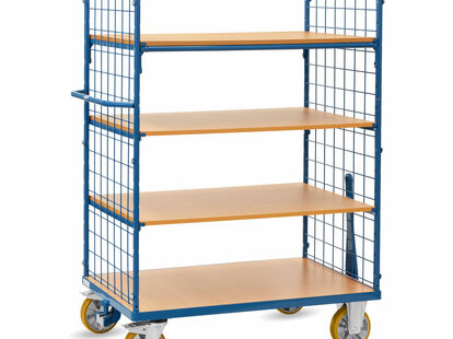 - 2 Lenk- und 2 Bockrollen (Feststeller an den Lenkrollen, gemäß der Europäischen Norm EN 1757-3 - Sicherheit von Plattformwagen)