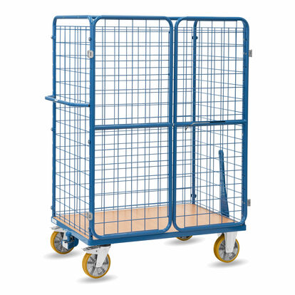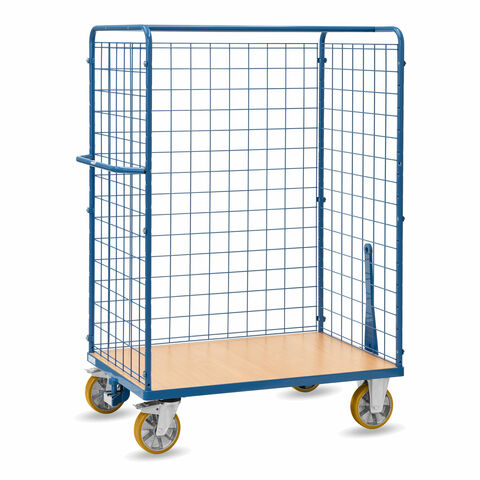 Die zwei Stirnwände und die Rückwand aus Drahtgitter schützen Ihre Waren zuverlässig vor Beschädigungen und halten Ihre Pakete und Kartons während des Transports sicher und stabil.