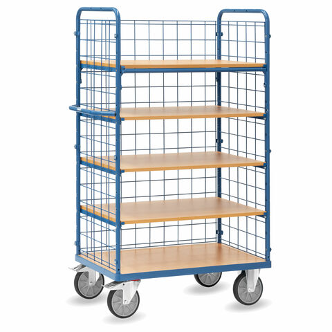 Dieser Etagenwagen ist mit 5 Ebenen ausgestattet, von denen 4 variabel einsetzbar sind, sodass Sie den Stauraum individuell anpassen können.Die Stirnseiten und eine Längswand sind durch ein stabiles Drahtgitter begrenzt, was für zusätzliche Sicherheit und Stabilität sorgt.