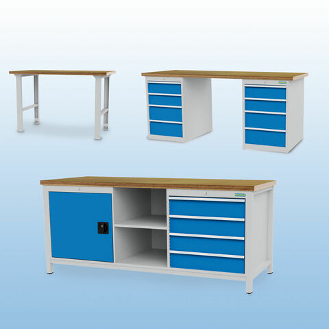 - Baukastenprinzip: ermöglicht eine variable Anordnung der Schubladenschränke oder der Werkbankfüße